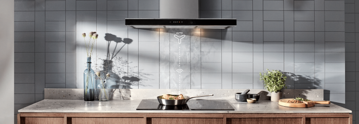 Когато готвите на плота, абсорбаторът ще реагира и ще включи светлината и вентилатора. Режимът по подразбиране включва светлина, ниска скорост на абсорбатора при варене и средна скорост при пържене.
