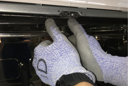 1. Внимателно издърпайте уплътнението за долния ръб, за да го извадите от гнездото му, и продължете, докато извадите цялото уплътнение.